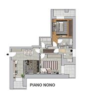 Oggetto di ristrutturazione in fase di completamento, è composto da soggiorno con cucina a vista, due camere matrimoniali e due bagni, uno dei quali en suite, oltre a ripostiglio, tre balconi e cantina.