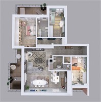 Oltre alle immagini che illustrano lo stato di fatto, abbiamo quindi pubblicato un'ipotesi di rivisitazione finalizzata all'ottimizzazione degli spazi; i rendering pubblicati ne sono una conseguente ipotesi di arredo. N.B.: questo progetto deve essere verificato nella sua fattibilità e non costituisce un elemento contrattuale.