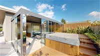 L'immobile si apre su un elegante ingresso che conduce all'ampio soggiorno, cuore della casa e cucina abitabile annessa. La zona giorno si affaccia su un magnifico terrazzo, attrezzato con una moderna veranda bioclimatica apribile, jacuzzi e barbecue, creando un'oasi di relax perfetta per intrattenere o godersi momenti privati.