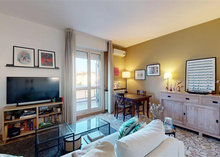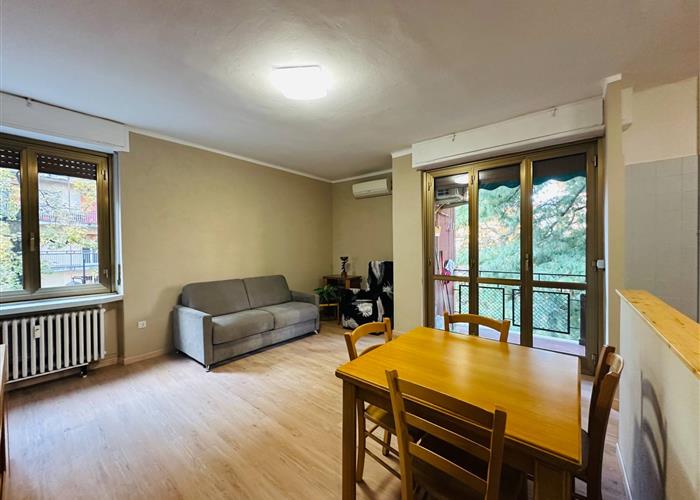 Ad Assago - via Matteotti 16 vendiamo un pregevole bilocale biesposto di 68 mq. (di cui 61 mq. interni) al quarto piano, composto da: soggiorno con cucina a vista ed accesso ad ampio terrazzo loggiato, camera matrimoniale con secondo balcone e bagno finestrato, oltre a cantina pertinenziale al piano seminterrato.