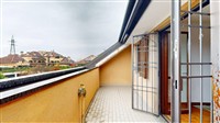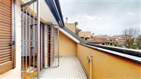 Al piano sottotetto si accede tramite una botola interna, non è abitabile, ma si presenta in buono stato con le stesse finiture dei piani sottostanti e la presenza di due velux. Esternamente, l'abitazione ha due piccoli giardini privati e due ampi terrazzi, uno al piano terra con accesso dalla cucina, il secondo al primo piano con accesso dalla camera matrimoniale.