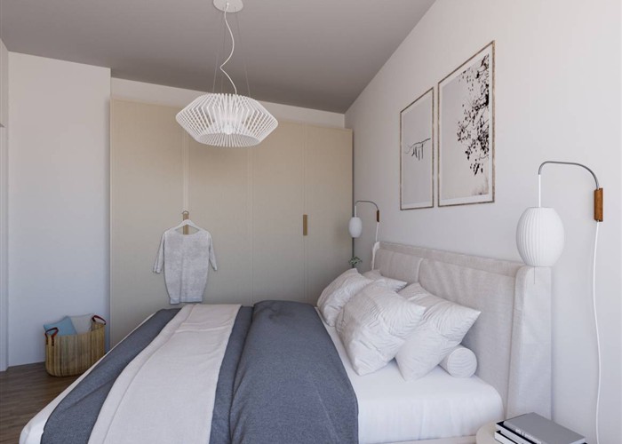 L'immobile è composto da ingresso, ampio soggiorno con cucina a vista, terrazzo loggiato, disimpegno, camera da letto e bagno finestrato. Completano la proprietà cantina e box auto di pertinenza.